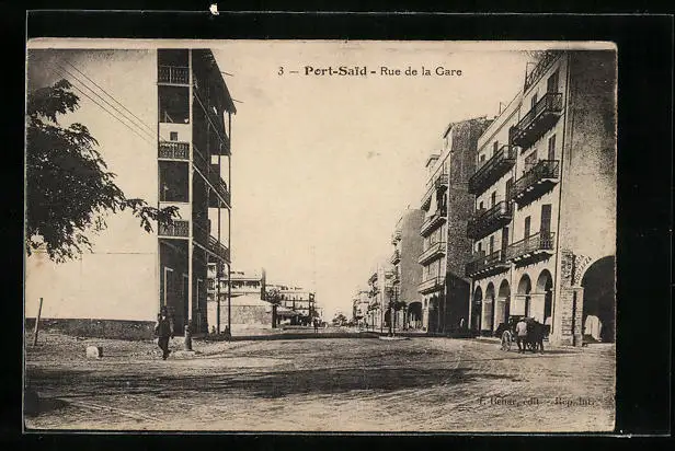 AK Port-Said, Rue de la Gare, Strassenpartie
