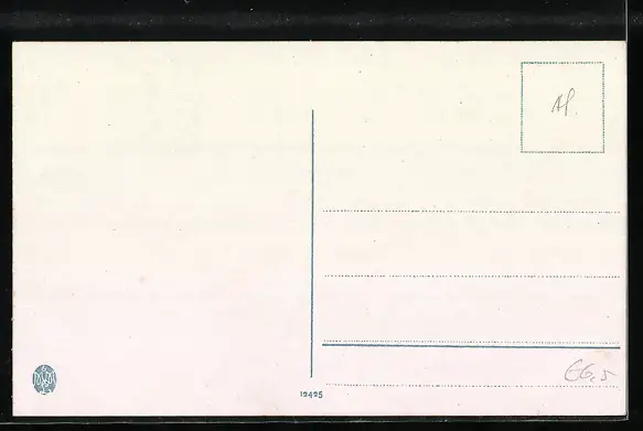 Personenbezogene Daten auf der Rückseite der Karte wurden durch blauen Textmarker unkenntlich gemacht. Die blauen Stellen sind auf die Vorderseite durchgeweicht und wirken sich negativ auf das Postkartenfoto aus