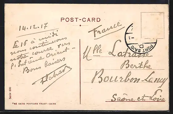 alte Ansichtskarte, gelaufen 1917, Briefmarke entfernt, rückseitig Oberflächenschaden, Abriebspur unten re., guter Zustand