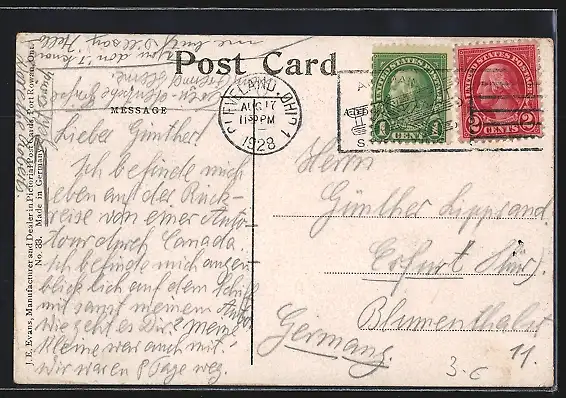 gelaufen 1928, Eckknick li. oben und re. unten, guter Zustand