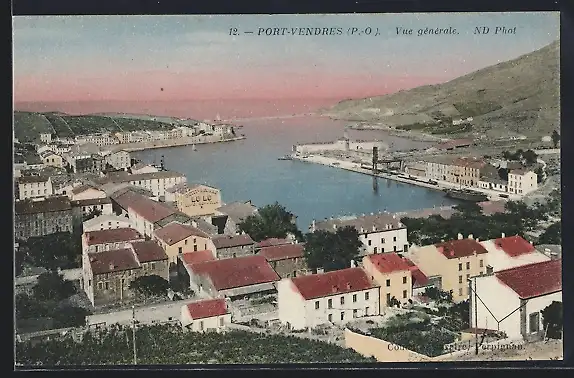 AK Port-Vendres, Vue générale du port et des collines environnantes