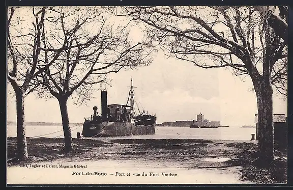 AK Port-de-Bouc, Port et vue du Fort Vauban