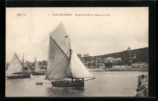 AK Port-en-Bessin, Barques de Peche sortant du Port