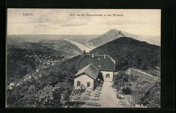 AK Porta, Blick aus der Bismarcksäule in das Wesertal