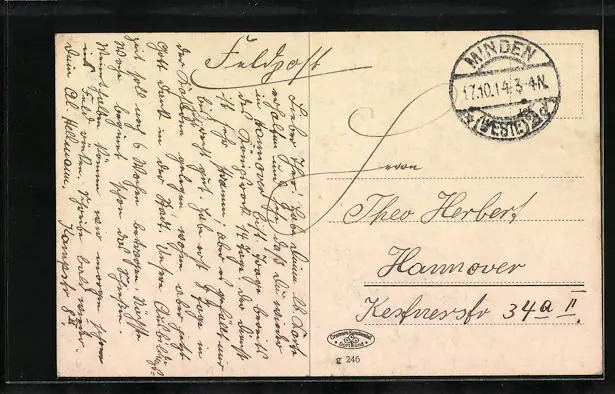 alte Ansichtskarte, gelaufen 1914 als Feldpost, Stempelspur, guter Zustand