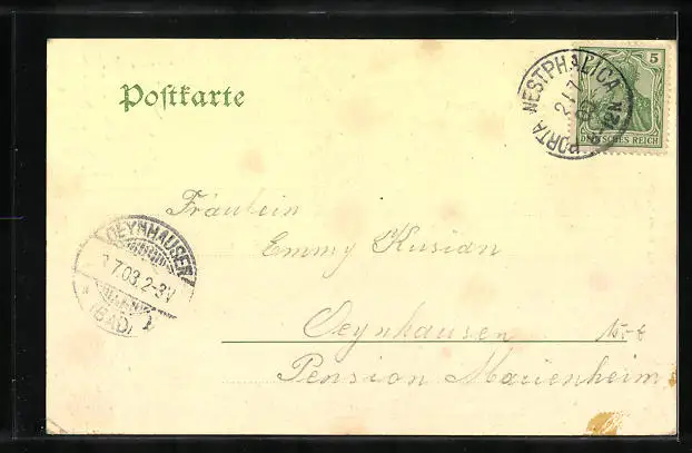 alte Ansichtskarte, gelaufen 1903, Albumspuren, sonst guter Zustand