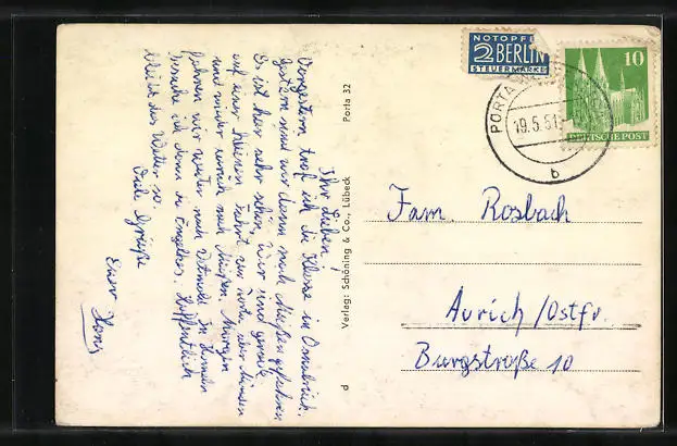 alte Ansichtskarte, gelaufen 1951, Eckknick li. oben, Stempelspur, guter Zustand