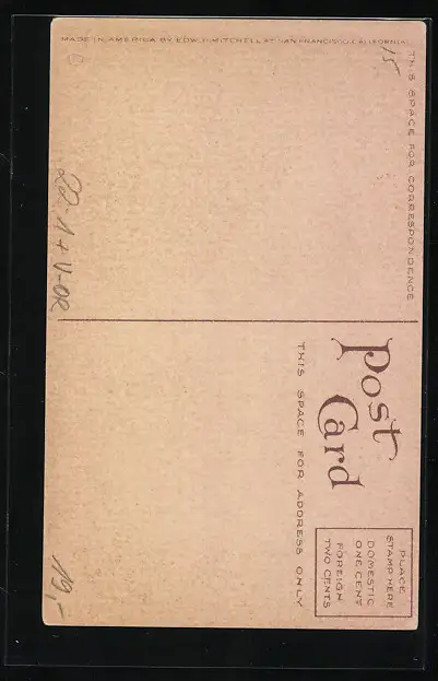 Personenbezogene Daten auf der Rückseite der Karte wurden durch blauen Textmarker unkenntlich gemacht. Die blauen Stellen sind auf die Vorderseite durchgeweicht und wirken sich negativ auf das Postkartenfoto aus