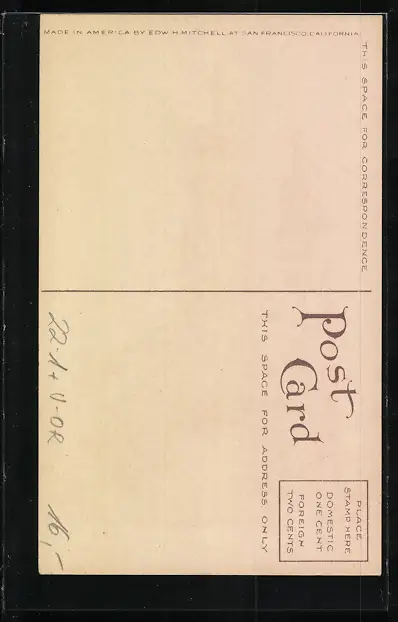 Personenbezogene Daten auf der Rückseite der Karte wurden durch blauen Textmarker unkenntlich gemacht. Die blauen Stellen sind auf die Vorderseite durchgeweicht und wirken sich negativ auf das Postkartenfoto aus