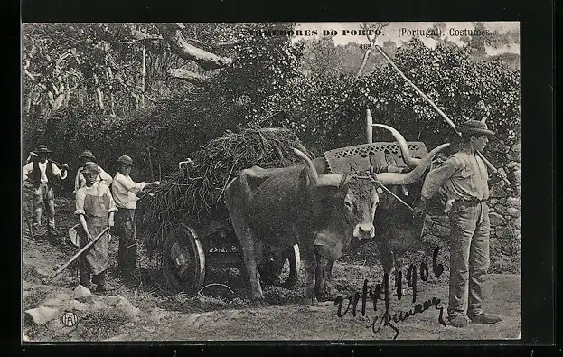 AK Porto, Landarbeiter mit Ochsen-Gespann
