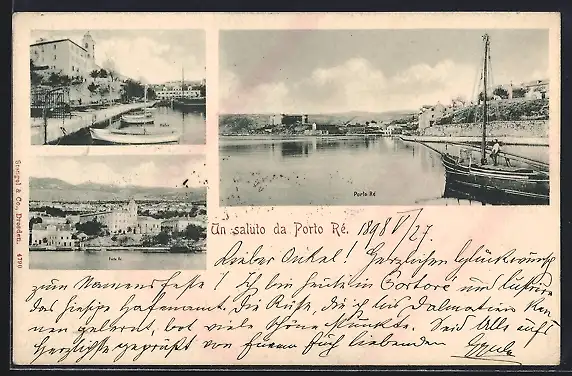 AK Porto Ré, Boote im Hafen, Ortsansicht