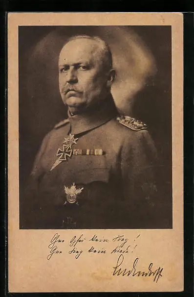AK Porträt General Erich Ludendorff in Uniform mit Schwarzer Adlerorden