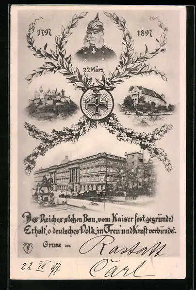 alte Ansichtskarte, gelaufen 1897, guter Zustand