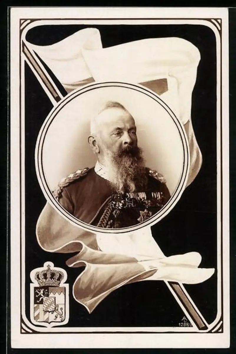 AK Porträt Prinzregent Luitpold in Uniform, Wappen