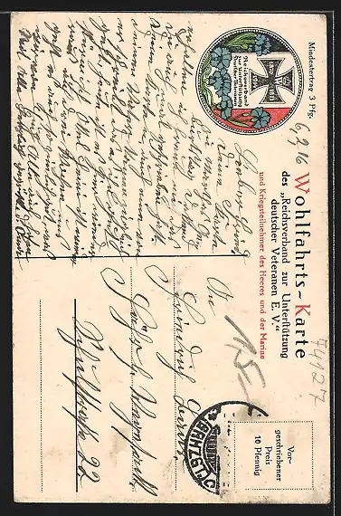 alte Ansichtskarte, gelaufen, Briefmarke entfernt, guter Zustand