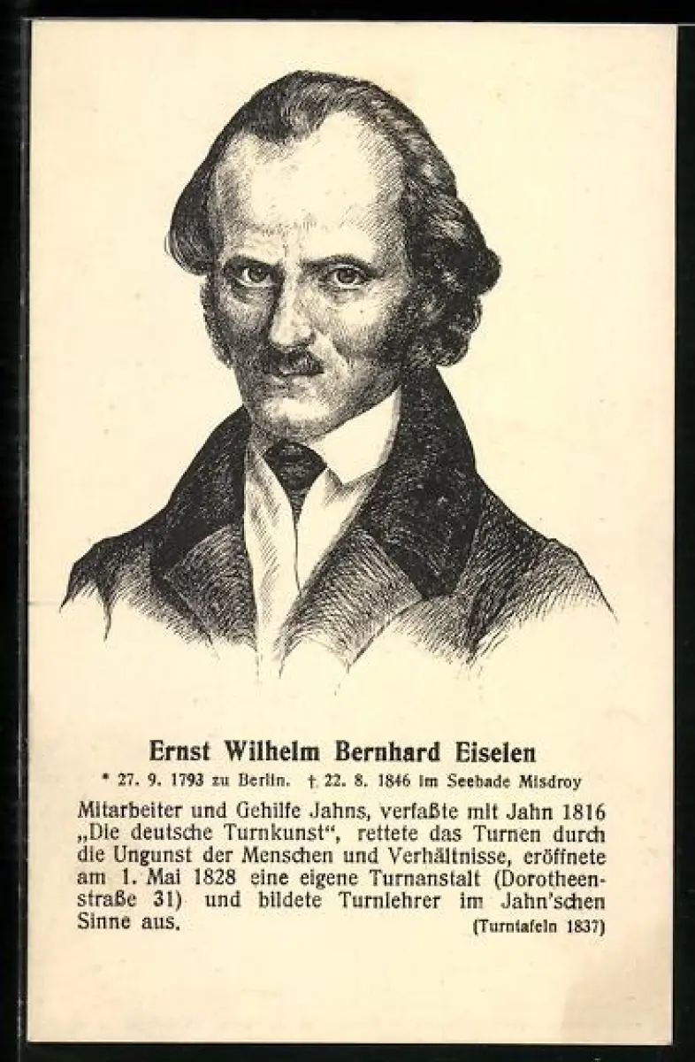 AK Portrait Ernst Wilhelm Bernhard Eiselen, Mitarbeiter und Gehilfe Turnvater Jahns