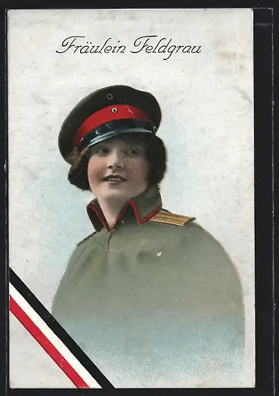 AK Portrait Frau in Uniform mit Mütze, Fräulein Feldgrau
