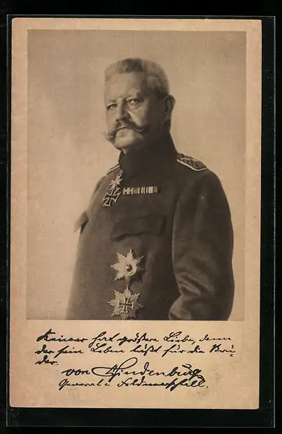 AK Portrait Generalfeldmarschall Paul von Hindenburg in Uniform mit Ordenspange & Eisernes Kreuz