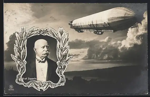 AK Portrait Graf Zeppelin mit seinem Luftschiff