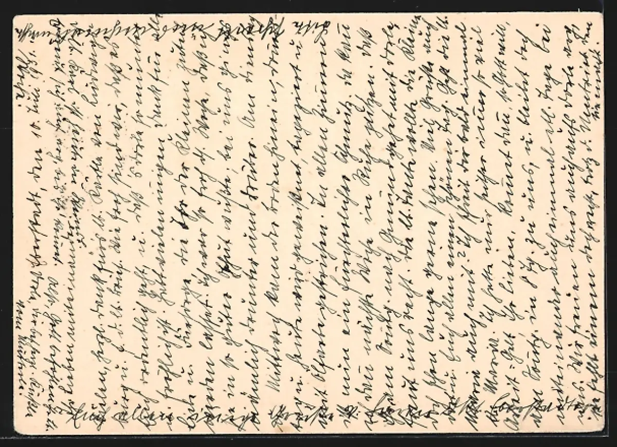 Personenbezogene Daten auf der Rückseite der Karte wurden durch blauen Textmarker unkenntlich gemacht. Die blauen Stellen sind auf die Vorderseite durchgeweicht und wirken sich negativ auf das Postkartenfoto aus