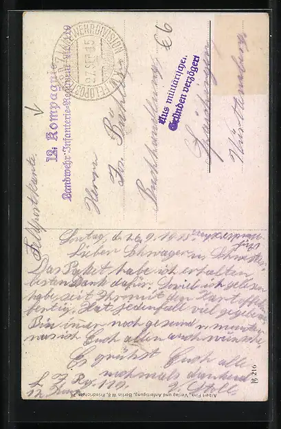 alte Ansichtskarte, gelaufen 1915, rückseitig Klebe- und Papierreste, guter Zustand