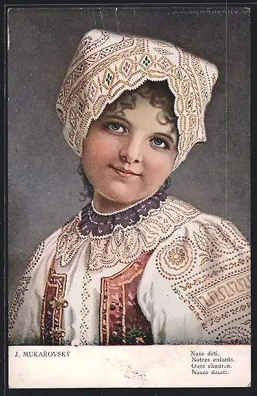 AK Portrait Mädchen in tschechischer Tracht mit bestickter Haube