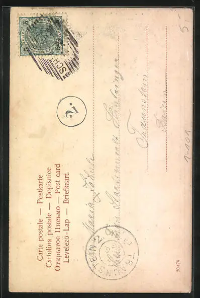 alte Ansichtskarte, gelaufen 1903, Stempelspur, guter Zustand