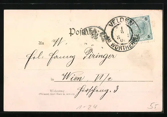 Personenbezogene Daten auf der Rückseite der Karte wurden durch blauen Textmarker unkenntlich gemacht. Die blauen Stellen sind auf die Vorderseite durchgeweicht und wirken sich negativ auf das Postkartenfoto aus