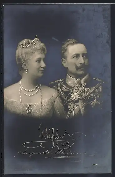 AK Portrait des Kaiserpaares mit Signatur, Kaiserin Auguste Victoria Königin von Preussen