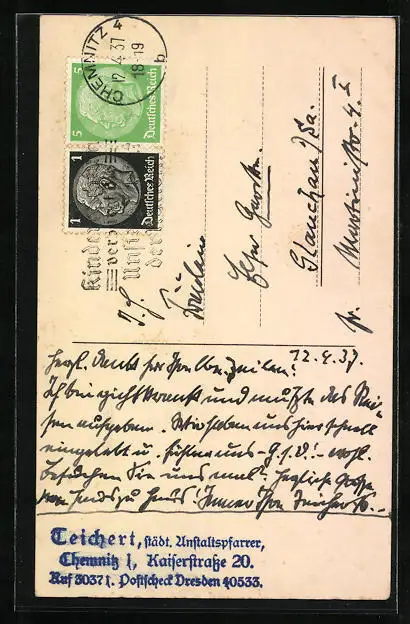 alte Ansichtskarte, gelaufen 1937, Stempelspur, guter Zustand