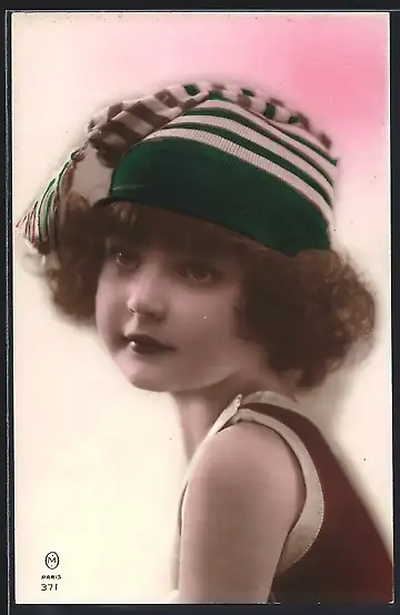 AK Portrait eines Mädchens mit gestreifter Mütze