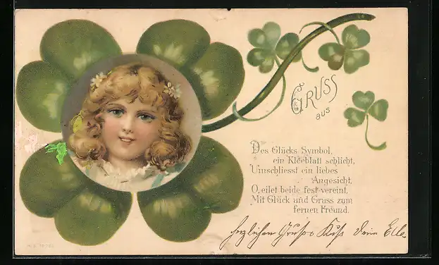 AK Portrait eines jungen Mädchens im Kleeblatt