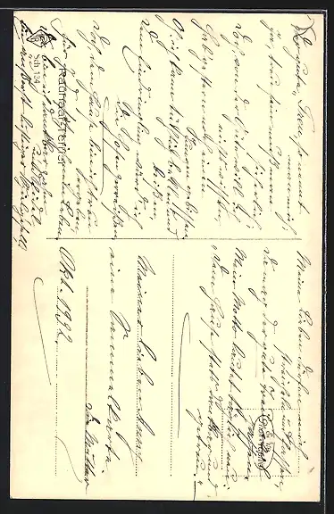 Personenbezogene Daten auf der Rückseite der Karte wurden durch blauen Textmarker unkenntlich gemacht. Die blauen Stellen sind auf die Vorderseite durchgeweicht und wirken sich negativ auf das Postkartenfoto aus