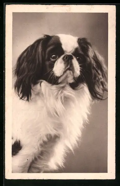 AK Portrait eines schwarzweissen Pekinesen