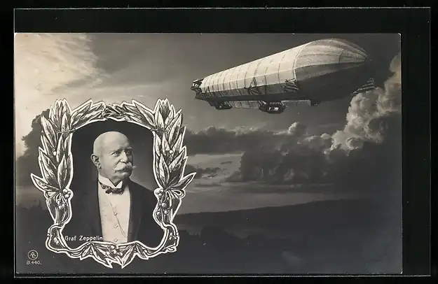 AK Portrait von Graf Zeppelin, Luftschiff im Flug