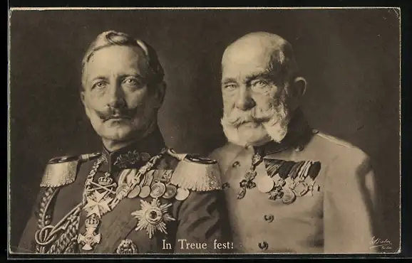 AK Portrait von Kaiser Franz Josef I. von Österreich und Kaiser Wilhelm II. in Uniform