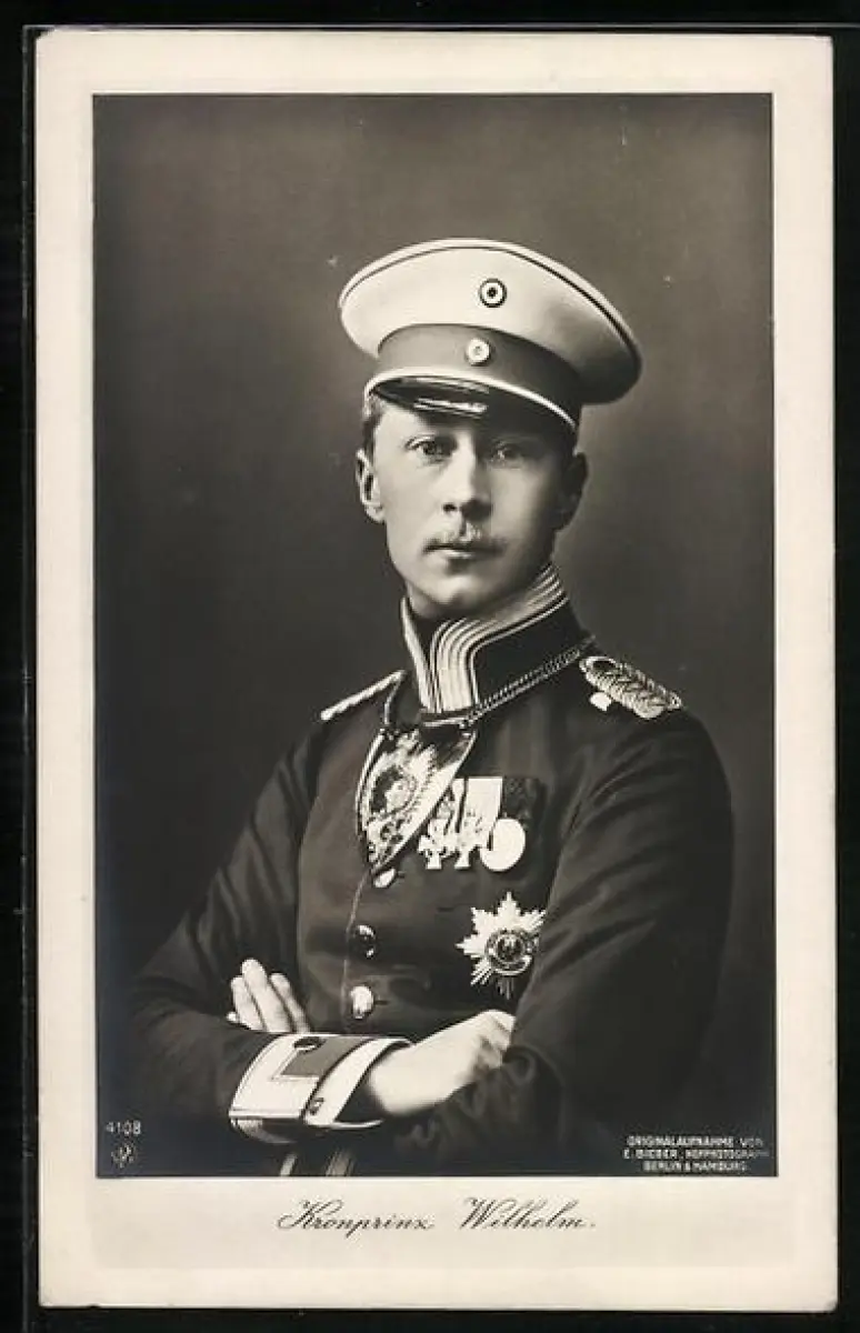 AK Portrait von Kronprinz Wilhelm von Preussen in Uniform mit Orden und Schirmmütze