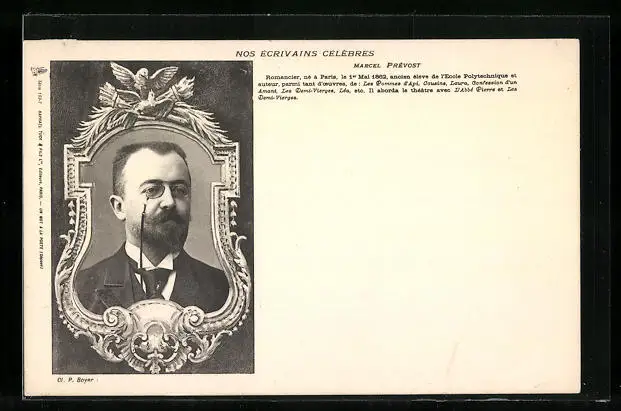 AK Portrait von Marcel Prévost mit Monokel