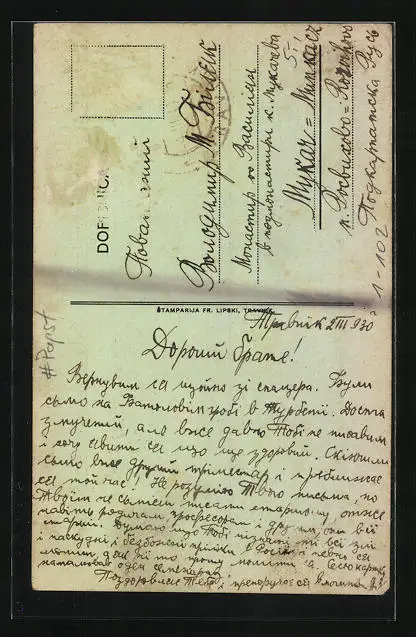 alte Ansichtskarte, gelaufen 1930, Briefmarke tw. entfernt, rückseitig Oberflächenschaden, Eckknicke oben, Bugspur oben mittig, guter Zustand