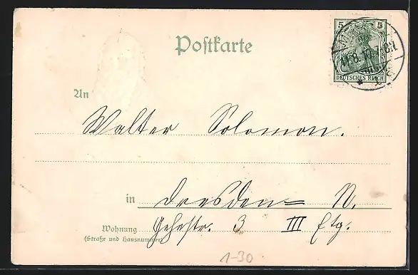 alte Ansichtskarte, gelaufen 1910, Eckknick re. oben, guter Zustand