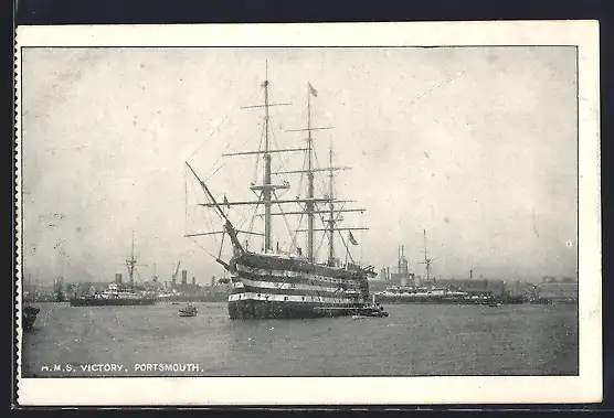 AK Portsmouth, Kriegsschiff HMS Victory im Hafenwasser