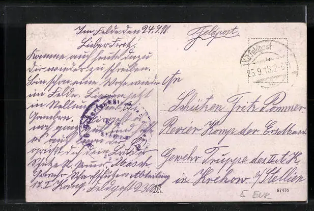 alte Ansichtskarte, gelaufen 1913 als Feldpost, guter Zustand