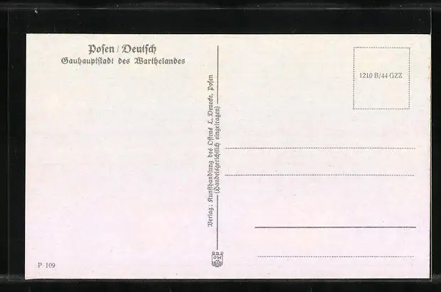 Personenbezogene Daten auf der Rückseite der Karte wurden durch blauen Textmarker unkenntlich gemacht. Die blauen Stellen sind auf die Vorderseite durchgeweicht und wirken sich negativ auf das Postkartenfoto aus