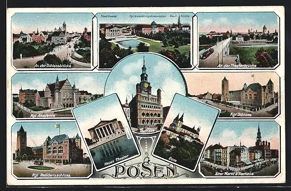 AK Posen-Poznan, Kgl. Akademie, Dom, Alter Markt u. Rathaus