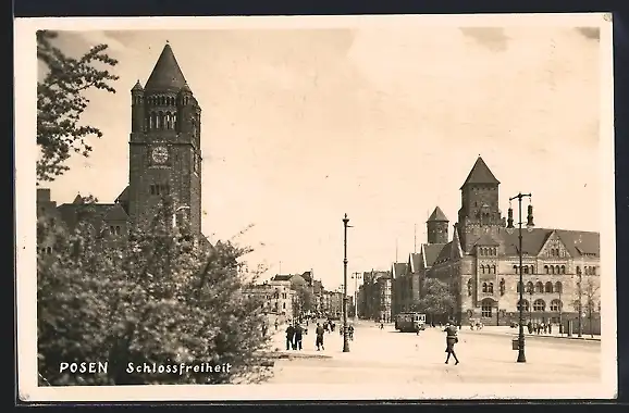 AK Posen-Poznan, Schlossfreiheit, Strassenbahn