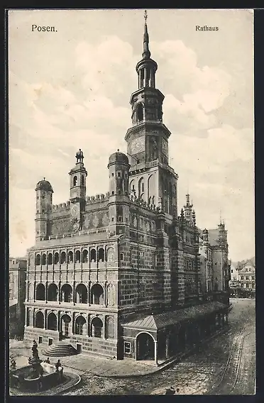 AK Posen, Rathaus mit Brunnen