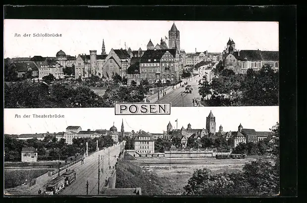 AK Posen, Strassenbahn auf der Theaterbrücke