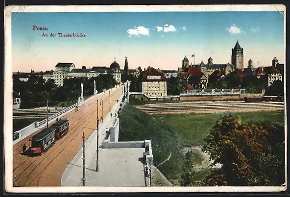 AK Posen, Strassenbahnverkehr auf der Theaterbrücke