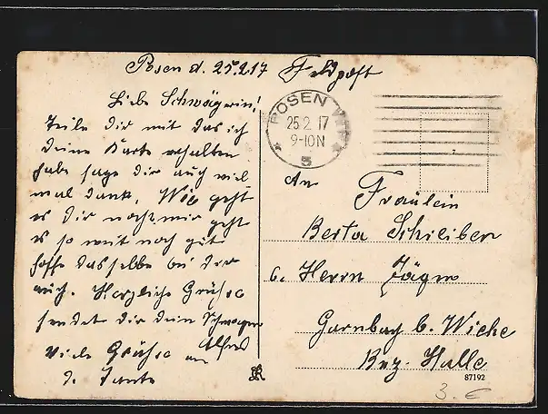alte Ansichtskarte, gelaufen 1917, Eckknicke oben, guter Zustand