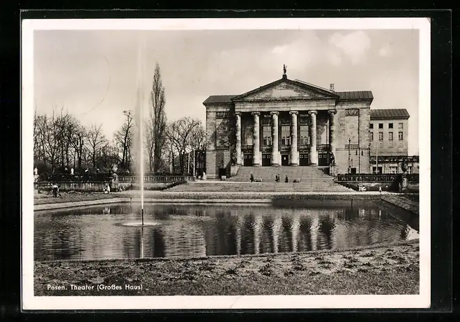 AK Posen, Theater, Grosses Haus, Springbrunnen